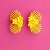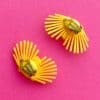 A gorgeous pair of 1950s deadstock earrings in yellow. This beautiful and lightweight pair of clip-on earrings have a fan-shaped/floral design and come complete with the original backing card. They are in very good condition since they have never been worn, however one of the beads from the centre of one of the flowers is missing (though you would hardly notice).