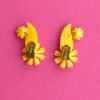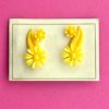 A gorgeous pair of rare 1950s deadstock earrings in yellow. This beautiful and lightweight pair of clip-on earrings have a feather/flower design and come complete with the original backing card. They are in mint condition since they have never been worn.