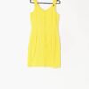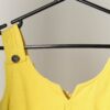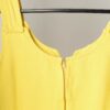 1960s bright yellow vintage dress with button details, split neckline and darts on the front and back. Fastens with zip at the back, and has little popper fasteners under the shoulders which can go round your bra strap to keep it hidden and in place. A stunning colour, sure to get you noticed! One button is missing from the back – If it were me I’d simply remove the other button, but I’ve left it here for you to decide! Our recommended size: UK 12 Label Says: n/a (none present) Condition: Good vintage condition overall; is missing one button on the back (could replace the pair or just remove the remaining one). There is a little wear on the lining of the shoulders, with a couple of small insignificant holes, though it doesn’t affect wear. Has has a minor seam repair on the shoulder where the edge of the material had come away on the stitching underside. You don’t really notice it unless you inspect it closely. (last picture) Material: feels like cotton Material properties: ribbed material, non-stretch We’ve provided garment measurements below and suggest you compare these to a similar garment you own to determine a good fit. Measurements are taken flat and doubled for waist and hip.