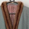 1960’s vintage blue woven jacket with mink fur trim. This beautiful blue woven jacket features a brocade pattern, a hook and eye closure, a light pink lining and a stunning mink fur trim. Made in England, and hand tailored in London, from a heavyweight wool blend with a synthetic lining.