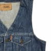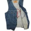 1970s vintage orange tab levis waistcoat in a mid blue denim. Features stunning embroidered RUSH band logo on the centre back panel in crimson and black, two pockets at the front with button closures and orange tab. Made from a slightly stretchy denim with a fitted shape. Very good condition.
