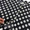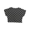 1990s vintage women’s large polkadot print crop top blouse in black and white. This is a nice relaxed fit cropped button-down blouse in a timeless print.