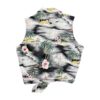 1990s vintage women’s Tommy Bahama collared Hawaiian print tie front sleeveless crop top. The monochrome base really makes the colourful tropical design pop. The hibiscus flowers and palm trees give a very summery feel. The tie front allows for a cute knot to be tied, creating a crop top.