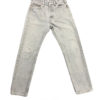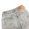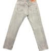 1990s vintage rare Levis 501xx jeans in light grey denim. 100% cotton. Made in the UK. Classic Levis patch and red tab are located on the rear.