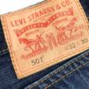 Levis 501 jeans in dark blue denim with whiskered hips and leather rear patch. Nice dark wash denim, with lovely areas of fading which add a nice worn in look.