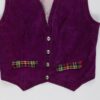 Original 60s purple suede vest with red plaid detail and snap buttons. This gorgeous vest features a deep V-neck, a synthetic back lining and two plaid detailed faux pockets above the hem. Made from a mid-weight suede and synthetic blend.