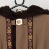 70s vintage Afghan coat with embroidered detail, made in England. This beautiful 1970s pale brown coat features yellow gold and brown floral embroidery around the opening hood and pockets. This jacket also features a cosy lining, two open side pockets, a buckle closure and a large hood. Made from a heavyweight cotton blend with a synthetic lining.
