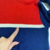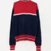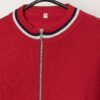 70s vintage knitted cardigan, made in Italy. This 1970s red, navy and white knitted cardigan features a colour block pattern, a full length zip closure and a stretchy hem for a personal fit. Made in Italy from a heavyweight wool blend.