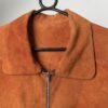 70s vintage orange suede jacket. This stunning 70s orange suede jacket features a silver zip closure along with a faux belt snap button closure. The bottom of the jacket has a split opening and is slightly flared. Made from a heavyweight butter soft suede leather.