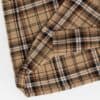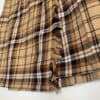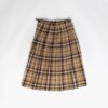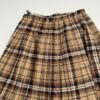 80s vintage plaid skirt in Autumn brown by Asdale. This mid-length wrap skirt features a mixed autumn brown and black plaid pattern, a faux leather buckle closure and is made in the Britain from a mid-weight wool and synthetic blend.