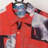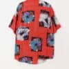 90s vintage abstract shirt in red and blue. This bright red 1980s shirt features a bold abstract pattern, a full length button closure, one chest pocket with a button closure and short sleeves. Made from a mid-weight synthetic material.