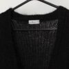 80s vintage black mohair cardigan. This 1980s black mohair cardigan features a deep V-neck, a two button hem closure, a stretchy hem and cuffs for a personalised fit and shoulder pads. Made from a mid-weight mohair blend.
