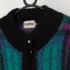 80s vintage bright mohair cardigan, made in UK. This 1980s black cardigan features a pink, blue and green plaid pattern, a full length button closure and two open side pockets. Made in the UK from a heavyweight mohair blend.