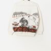 80s vintage bunny rabbit graphic sweatshirt in white, black and orange. This beautiful 1980s white sweatshirt features bunny rabbits in the forest on the front and back with autumn orange leaves. This sweatshirt also features a round neck, long sleeves and is made from a mid-weight cotton blend.