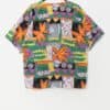 80s vintage crazy shirt with oversized fit. This bright, multi-coloured abstract shirt features a round neck, a full length button closure, short sleeves and is made from a lightweight cotton.