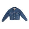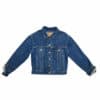 Vintage 80s Levis dark to medium blue denim jacket, model 77715-0289. This jacket features four chest pockets, two with button closures, red tag and the classic inner patch. On the bottom back there are the classic adjustable button straps for a more tapered fit. This jacket is in good condition. Photos show both cuffs rolled and unrolled.