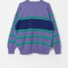 80s vintage Nick Faldo Pringle golf jumper in lilac. This 1980s Nick Faldo x Pringle of Scotland golf lilac jumper features embroidered golf clubs and flags on the front and a green, white and blue striped pattern. This jumper also features a crew neck, long sleeves, the Pringle logo is embroidered onto the left arm and is made in Scotland from a mid-weight pure wool.
