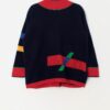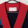 80s vintage Sandra Duvall England colour block wool cardigan. This 1980s primary colour cardigan features a colour block pattern on the front, back and sleeves, a deep V-neck and a full length button closure. Made from a mid-weight, slightly coarse wool blend.