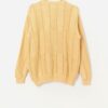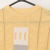 90s vintage sweater in yellow with unique pattern. This 80s jumper in sunshine yellow features a unique white and grey pattern on the front, a round neck and a stretchy hem and cuffs for extra comfort. Made from a heavyweight soft cotton blend.