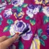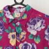 80s vintage Topshop blouse with vibrant rose print. This bold 1980s Topshop blouse features a beautiful purple rose print, a full length button closure, long sleeves with buttoned cuffs and is made in England from a mid-weight synthetic material.