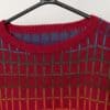 80s vintage wool geometric grid patterned jumper, red. This red jumper features a multicoloured geometric grid pattern, a loose crew neck and long sleeves. Made from a mid-weight, slightly coarse, wool.