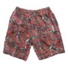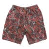 90s Adidas vintage surf shorts with grey and red abstract pattern. These shorts have an elasticated waist, two side pockets, internal net key pocket and Adidas logo embroidered on the front.