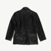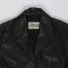 90s vintage Gapelle black real leather jacket. This jacket features a deep V-neck, full length button closure, two pockets above the hem and is fully lined. Made from a heavyweight soft leather and synthetic lining.