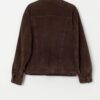 90s vintage brown suede bomber jacket. This 1990s chocolate brown bomber jacket features a button closure, two open side pockets, a collared neckline, an adjustable hem and a soft lining. Made from a heavyweight butter soft suede leather with a synthetic lining.