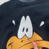 90s vintage Daffy Duck Looney Tunes sweatshirt, made in USA. This 1991 black sweatshirt by Acme clothing, features a large Daffy Duck graphic, long sleeves, a crew neck and is made in the USA from a heavyweight cotton blend.