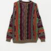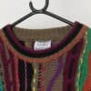 90s vintage Kalaroo Australia coogi style sweater. This amazing olive green 90s coogi style sweater by Kalaroo Australia features a colourful striped pattern, a crew neck and long sleeves. Made in Australia from a heavyweight, soft mercerised cotton with a relaxed fit.