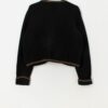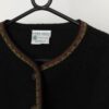 90s vintage Laura Ashley cropped wool jacket in black. This beautiful black Laura Ashley jacket features a red, yellow and green trim along the folded cuffs, neckline and opening. This jacket also features a crew neck, a button closure and is made from a heavyweight pure new wool.