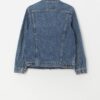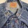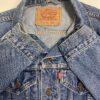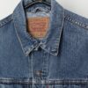 90s vintage Levis denim trucker jacket. This 1998 mid-blue Levis denim jacket features two chest pockets with button closures, two side pockets, buttoned cuffs and an adjustable button hem. The classic red Levis tab is on the left chest pocket and is made from a heavyweight cotton.