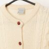 90s vintage Naturals wool cable knit cardigan in cream. This beautiful 1990s cream cardigan by Naturals features a cable knit pattern, a round neck and a faux wooden button closure. Made in Scotland from a heavyweight, slightly coarse, pure new wool.