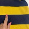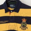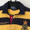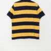 90s vintage Polo by Ralph Lauren 381 Bleecker St striped polo shirt. This custom fit, short sleeved Polo by Ralph Lauren navy and yellow striped polo shirt features a large Ralph Lauren logo on the left of the chest, a button closure and is made from a heavyweight cotton.