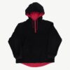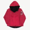 90s vintage red black reversible windbreaker jacket with fleece lining. This reversible jacket features a drawstring hood, a large pouch pocket with a snap button closure, a centre pocket with snap button closures, a quarter zip closure and is made from a heavyweight synthetic blend.