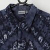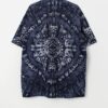 90s vintage tie dye shirt in navy blue. This 1990s navy blue shirt features a cool tie dye pattern, a purple button closure and short sleeves. Made from a mid-weight cotton.