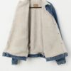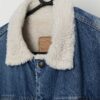 90s vintage Wrangler sherpa denim jacket. This Wrangler jacket features two chest pockets with button closures, two open side pockets and the Wrangler logo is embroidered above the left pocket. This jacket also features a snug sherpa lining and is made in Canada from a heavyweight cotton with a synthetic lining.