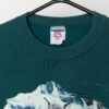 90s wolf graphic Jerzees sweatshirt. This amazing 1990s green sweatshirt features two wolves in snowy Zion national park (Utah), a crew neck and is made from a mid-weight cotton blend.