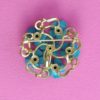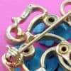 Pretty Avon brooch – or pendant – with blue flowers. This attractive multi-flower brooch has blue painted flowers and a gold surround. The top of the brooch has a loop so that you can use it as a pendant. The back of the brooch is signed “Avon” and is gold coloured with a pin with a safety clasp on the pin fastener to secure the brooch. This item dates to around the late 1950s/early 1960s.