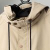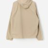 Beige Timberland hooded jacket with real leather trim. This lined Timberland jacket in beige features a full hidden zip closure with bronze, branded snap buttons. This jacket also features two side pockets and black drawstrings on the hood. This jacket also features a mesh lining and a high neck. The Timberland logo is featured on the left arm. Made from a mid-weight nylon, polyester and cow leather blend.