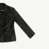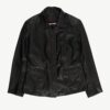 Black leather fitted vintage jacket. This 90s jacket features a hidden button closure, two open pockets above the hem and is made from a heavyweight soft leather and synthetic lining.