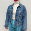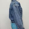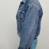 Womens Wrangler vintage denim jacket, slightly cropped style in stonewash blue. Jacket has full length sleeves, classic Wrangler tab on pocket and adjustable waist. Very good condition; feint mark on the back (pictured) and on the arm, barely noticeable.