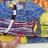 Crazy vintage shirt with bold abstract pattern. This bright 90s shirt features a bold abstract pattern, a full length button closure, one chest pocket with a button closure and short sleeves. Made from a mid-weight synthetic material.
