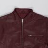Dark red real leather biker jacket. This Y2K jacket features a full length zip closure, two open side pockets, one chest pocket with a zip closure, and is fully lined. Made from a heavyweight soft leather and synthetic lining.
