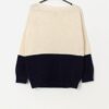 Deck Hand knitted wool deadstock boat neck sweater. This cream and navy colour block jumper by Deck Hand features a knitted anchor on the front, a buttoned boat neck and a stretchy hem and cuffs for a personalised fit. Made from a heavyweight, slightly coarse, wool.