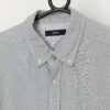 Diesel short sleeved linen shirt in grey. This pale grey shirt by Diesel features a white embroidered ‘D 78’ above the hem on the front left, a full length button closure, a button down collar and short sleeves. Made from a mid-weight linen.