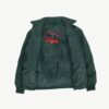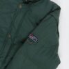 Duffy goose down puffer bomber jacket in forest green puffer jacket with removable sleeves. This 90s multiway jacket features two pockets above the hem with fabric hook and loop closures, a padded high neck, a zip and snap button closure, adjustable elasticated cuffs and removable sleeves to turn the item into a gilet! Made from a heavyweight synthetic material with a real goose down filing.