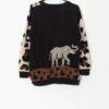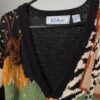 Epic vintage cardigan with big cats, giraffes and elephant. This stunning and unique cardigan features a beautiful design of big cats perching in a tree and a lion, giraffe and zebra with a 3D mane knit and an elephant with a 3d knit ear – A very special cardigan! This cardigan also features amazing big cat buttons and a v-neck. Circa 1990-03. Made from a heavyweight, soft ramie and cotton blend.