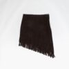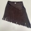 Fringed chocolate brown skirt with western cowgirl hippie vibe. This chocolate brown skirt by features a diagonal hem with fringe detail, a side zip closure and is made from a lightweight soft synthetic material.
