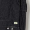 G-Star Raw denim chore jacket with white stitching. This indigo blue denim jacket by G-Star Raw features the G-Star logo on the left of the chest, a full length branded button closure, two side pockets, a large open pocket above the hem, an adjustable hem and buttoned cuffs. Made from a heavyweight cotton.